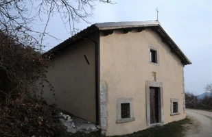 È una chiesa campestre, protetta verso sud dai boschi di Mt Carpenale (1.384 m lsm), co...